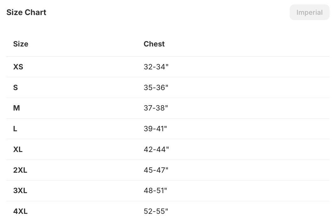 | Size | Chest |
