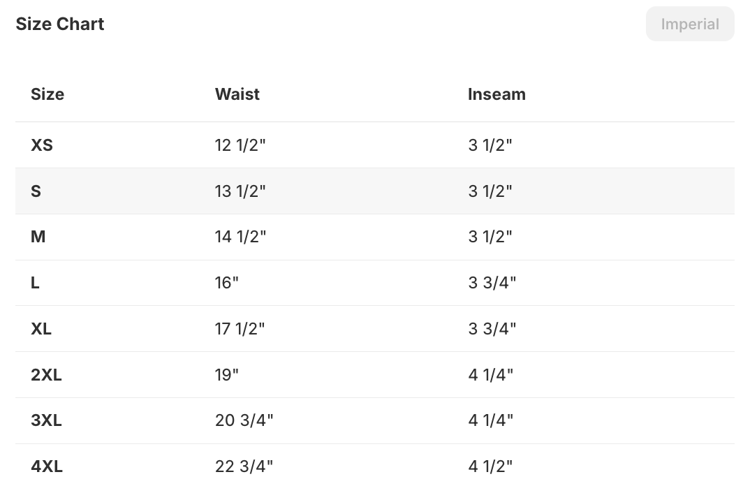 | Size | Waist | Inseam |